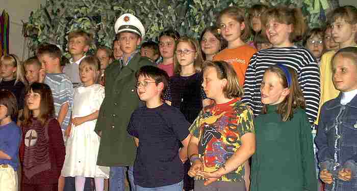 Das gelungene Bühnenbild wurde liebevoll von Monika und Herbert Stoepper erstellt und lässt Jung und Alt in eine verwunschene Zauberwelt eintauchen. Besonders hervorzuheben ist sicherlich die beeindruckende Leistung der Hauptdarsteller, die souverän und ohne Lampenfieber über eine Stunde lang ihre teilweise schwierigen Rollen meisterten. Wie lange haben sie wohl mit ihren Eltern und Lehrern auswendig lernen und proben müssen, um dieses publikumswirksame Musical auf die Beine zu stellen?