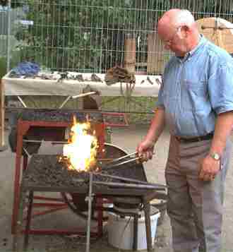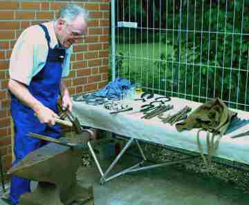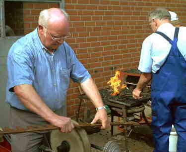 Das alte Schmiedehandwerk wird vorgeführt von August Bormann (oben) und Gert Schmitz |