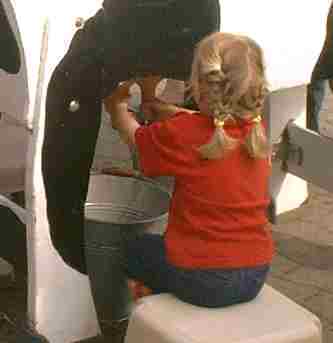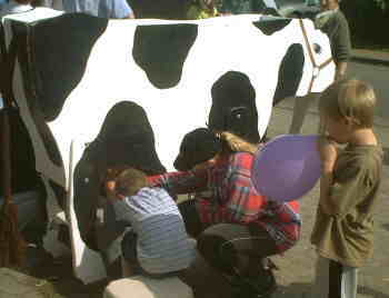 Der Kindergarten des DRK organisierte Treckerfahren für Kinder und auch das 'Holzkuhmelken' (auf Bildern weiter oben). |