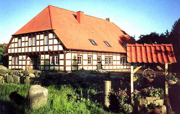 einem typisch niedersächsischen Fachwerkhaus und Eichenlaub an den