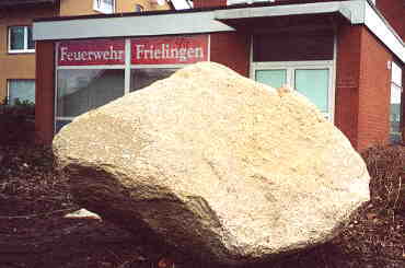 ![]() Nichts von alledem. Der große Findling ist eine Spende der Frielinger